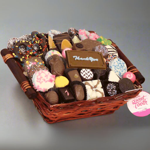 Thank You Chocolate Gift Basket Let them know how much you care and appreciate them with The Sweet Tooth's Thank You Chocolate Gift Baskets...